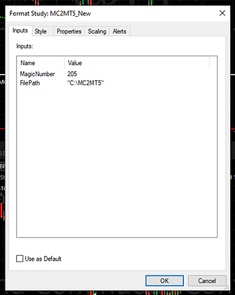 NOTE: If TradeStation is used instead of MultiCharts, insert the strategy, then MC2MT5.eld indicator into your desired chart, set the inputs and make sure "Update Value Intra-Bar" is selected.